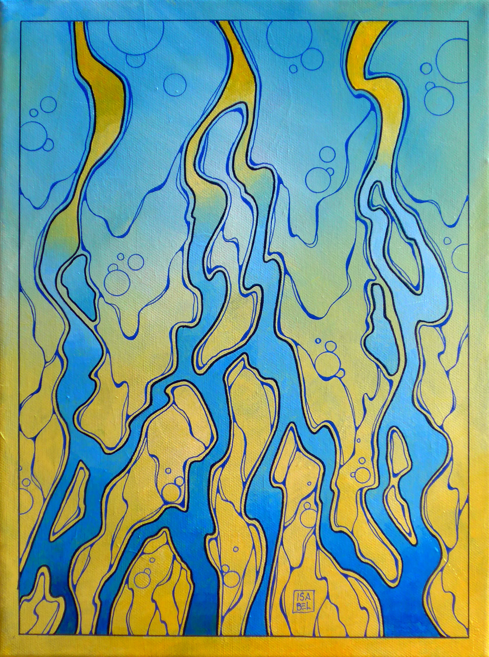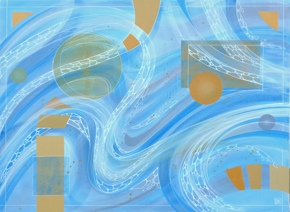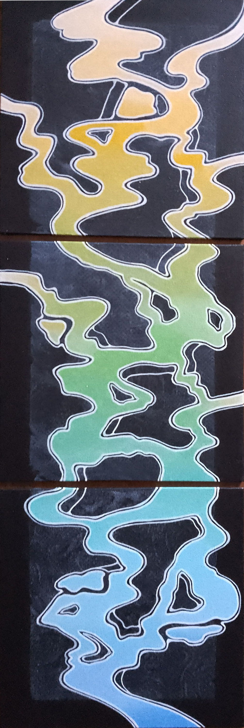 Issue de mes premières recherches en peinture intuitive, cette série est basée sur le mouvement, celui de l’eau, de l’air, des fumées, des reflets ou des courants, suggéré par des lignes souples qui forment des structures complexes. Tous ces tableaux sont réalisés à l’acrylique sur toile.